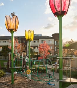 Tote park, the first publicly accessible space available to visitors and residents is now open. Spread over half a hectare, the new park evokes plenty of charm with spacious rolling lawn, serpentine gardens and a nature playground for families.